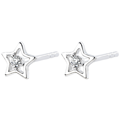L'iconique modèle étoile en or blanc monté d'un diamant, revisité en boucles d'oreilles discrètes et singulières.