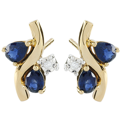 Boucles d'oreilles Algoma - saphirs et diamants - or jaune 9 carats