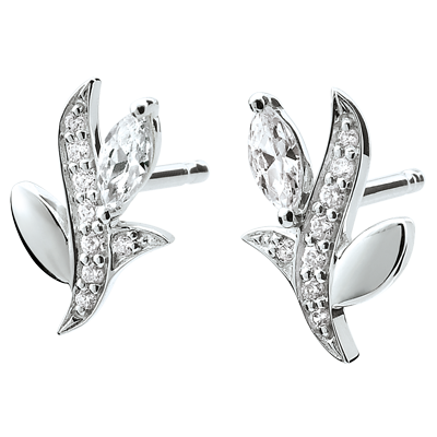 Boucles d'oreilles Bois Mystérieux - or blanc 18 carats et diamants navettes