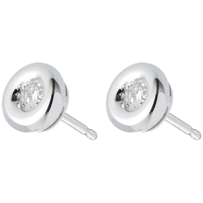Un diamant lové au coeur d'un calice or blanc, pour des puces d'oreilles rondes et délicates.