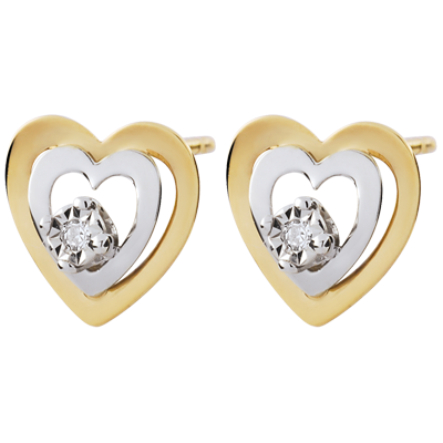 Boucles d'oreilles Coeurs Boudoir - deux ors - or blanc et or jaune 9 carats