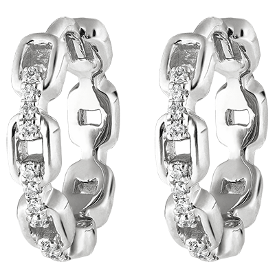 Boucles d'oreilles Créoles Regard d'Orient - Maillon Cubain - or blanc 18 carats et diamants