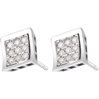 Boucles d'oreilles empreinte - puces or blanc 18 carats pavées - 0.27 carats - 18 diamants