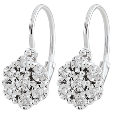 Boucles d'oreilles Fraicheur - Fleur de Flocon - 14 diamants et or blanc 9 carats