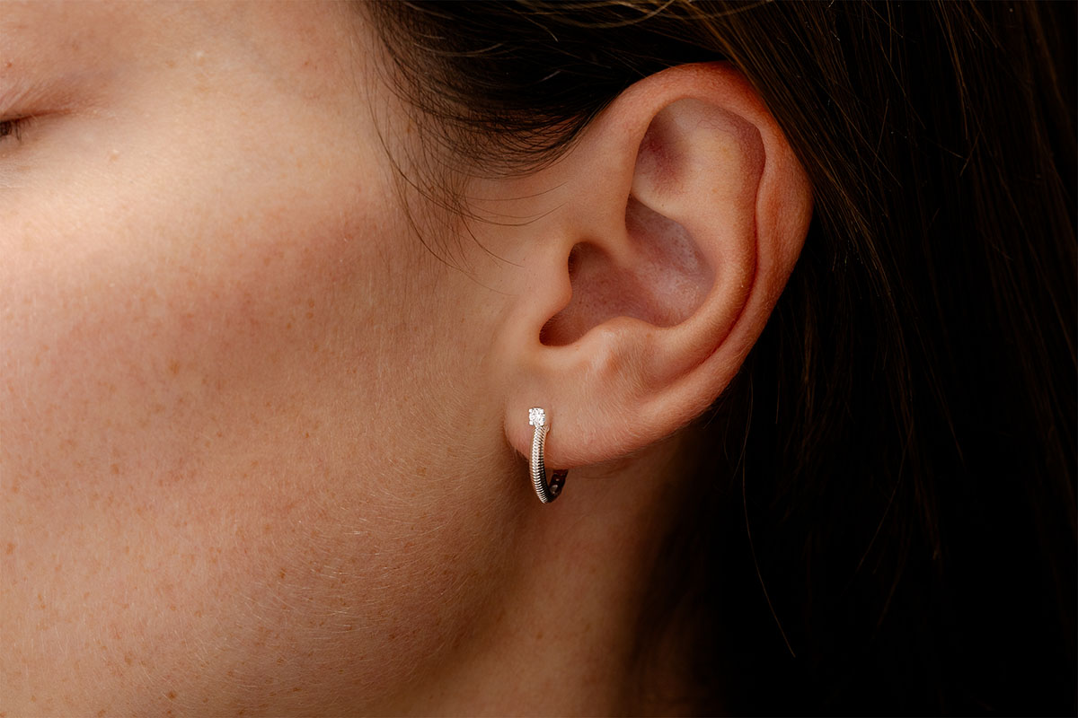 FRAICHEUR Nº82 Boucles d'oreilles Fraîcheur - Créoles travaillés - or blanc 18 carats et diamants
