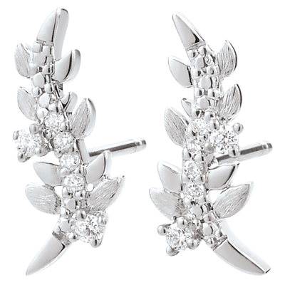 Boucles d'oreilles Jardin Enchanté - Feuillage Royal - or blanc 18 carats et diamants