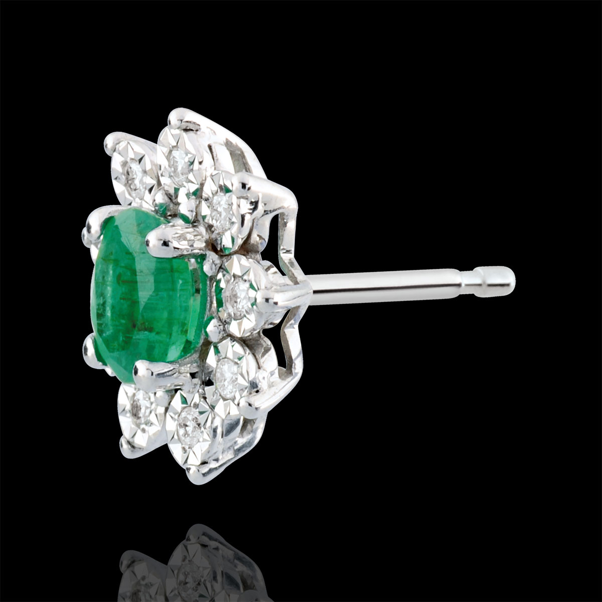 ETERNEL EDELWEISS Nº4 Boucles d'oreilles Eternel Edelweiss - Marguerite Illusion - émeraude de synthèse et diamants de synthèse - or blanc 9 carats