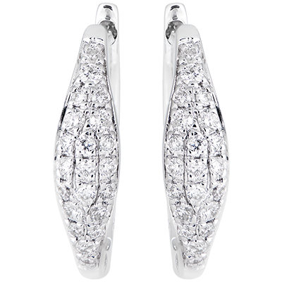 Boucles d'oreilles mini créoles - Larmes pavées - or blanc 9 carats et diamants