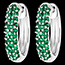 Découvrez une paire de créoles en or blanc 18 carats délicatement serties de 62 émeraudes réparties sur trois rangs pavés. Ce bijou allie un design classique et intemporel à une touche de couleur vive, idéale pour sublimer toutes vos tenues. La finesse du pavage et la qualité Very Good des pierres assurent un éclat subtil et élégant.… Voir plus Infos techniques