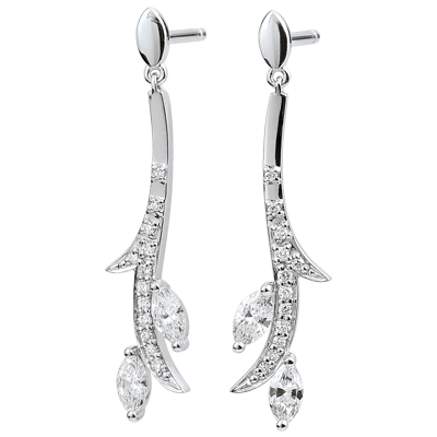 Boucles d'oreilles pendantes Bois Mystérieux - or blanc 9 carats et diamants navettes
