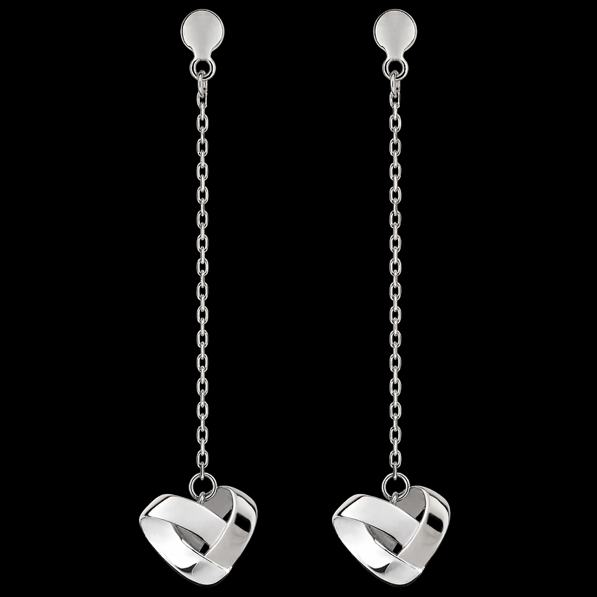 Boucles d'oreilles Pendantes Cœur Pliage Or Blanc 9 carats