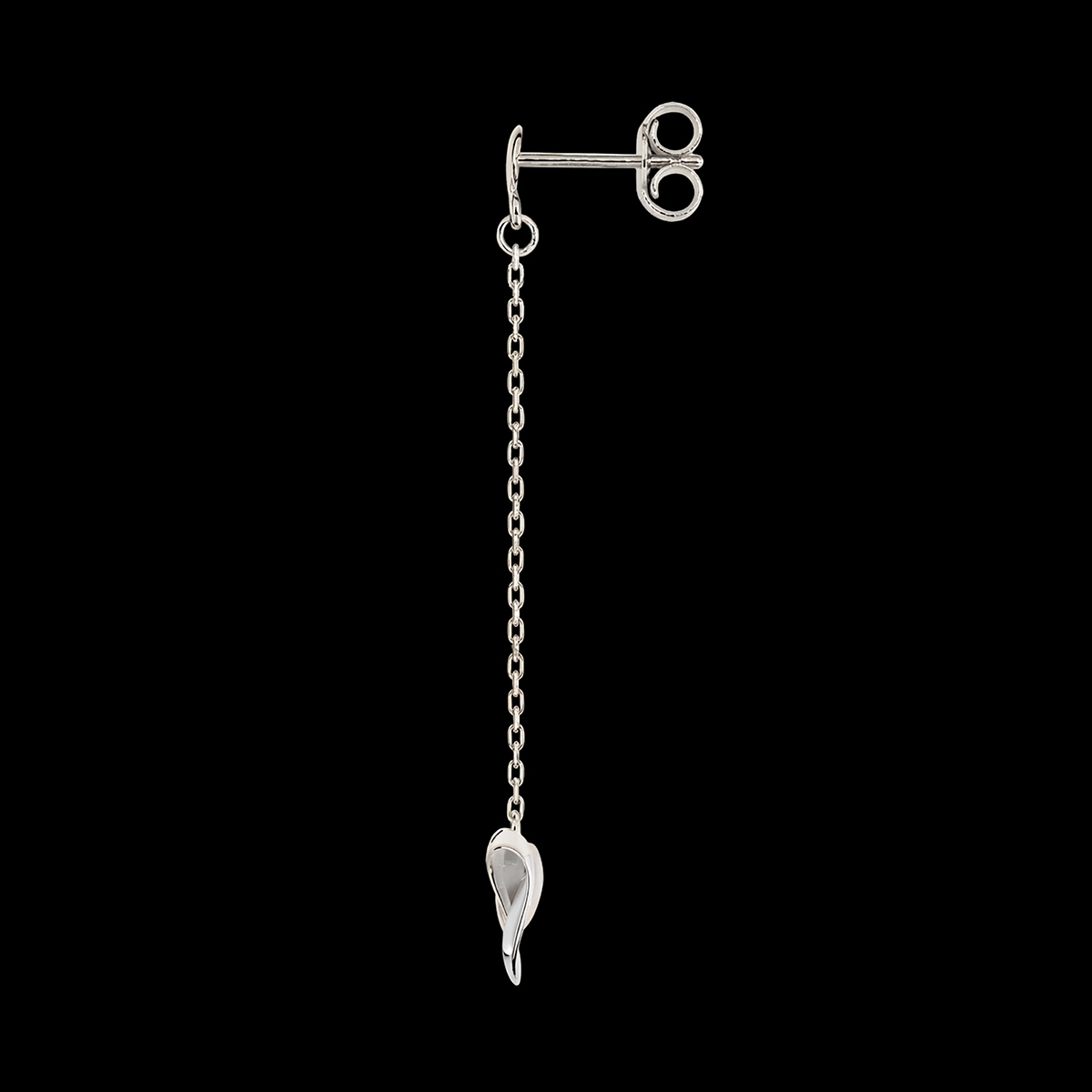 Le coeur, icône de la joaillerie, revisité par Edenly dans une version origami où les rubans d'or blanc s'enlacent avec originalité et élégance. Un modèle décliné dans une version boucles d'oreilles chaîne, douces et sensuelles qui accompagnent avec légèreté les mouvements du visage.