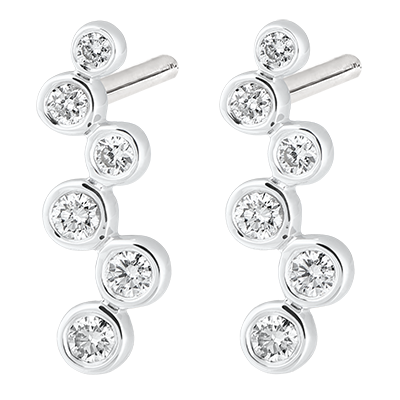 Une succession de 6 diamants sertis clos comme une succession de perles de rosée pour une paire de boucles d'oreilles douces et raffinées.