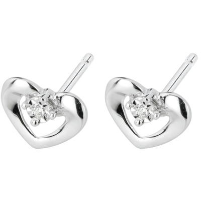Boucles d'oreilles puces jolis coeurs or blanc 18 carats et diamants