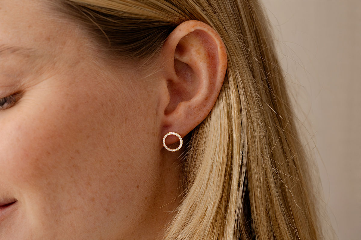 Un cercle parfait serti de diamants éclatants, pour une brillance tout en légèreté.Des puces contemporaines et intemporelles, à porter de jour comme de nuit.