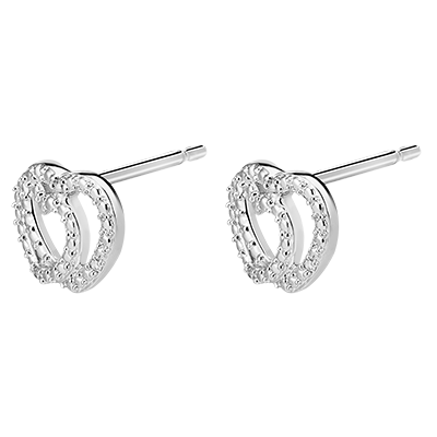 Boucles d'Oreilles Puces Précieux Secret - Cœur Complices - or blanc 9 carats et diamants