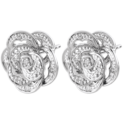 Boucles d'oreilles Éclosion - Rose Dentelle - or blanc 9 carats et diamants
