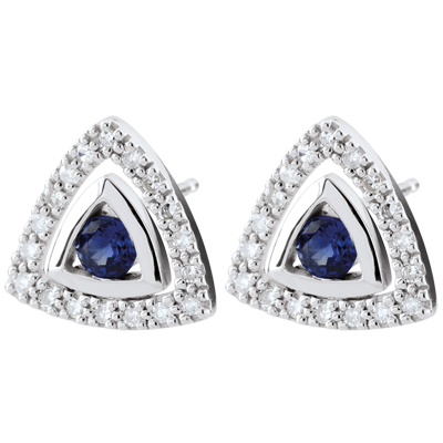 Merveilles d'élégance et de féminité, deux triangles richement pavés de diamants habritent chacun un saphir.