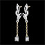 Ces boucles d'oreilles pendantes associent avec élégance l'or blanc et l'or jaune 18 carats dans un design délicat de feuillage. Suspendu à une fine chaîne, un diamant scintillant de 0,06 carat apporte une touche de lumière subtile et raffinée. Inspirées par la nature, elles incarnent la délicatesse et la légèreté d'un jardin enchanté.… Voir plus Infos techniques