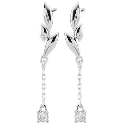 Un délicat feuillage fait tréssaillir le diamant qui y est suspendu.