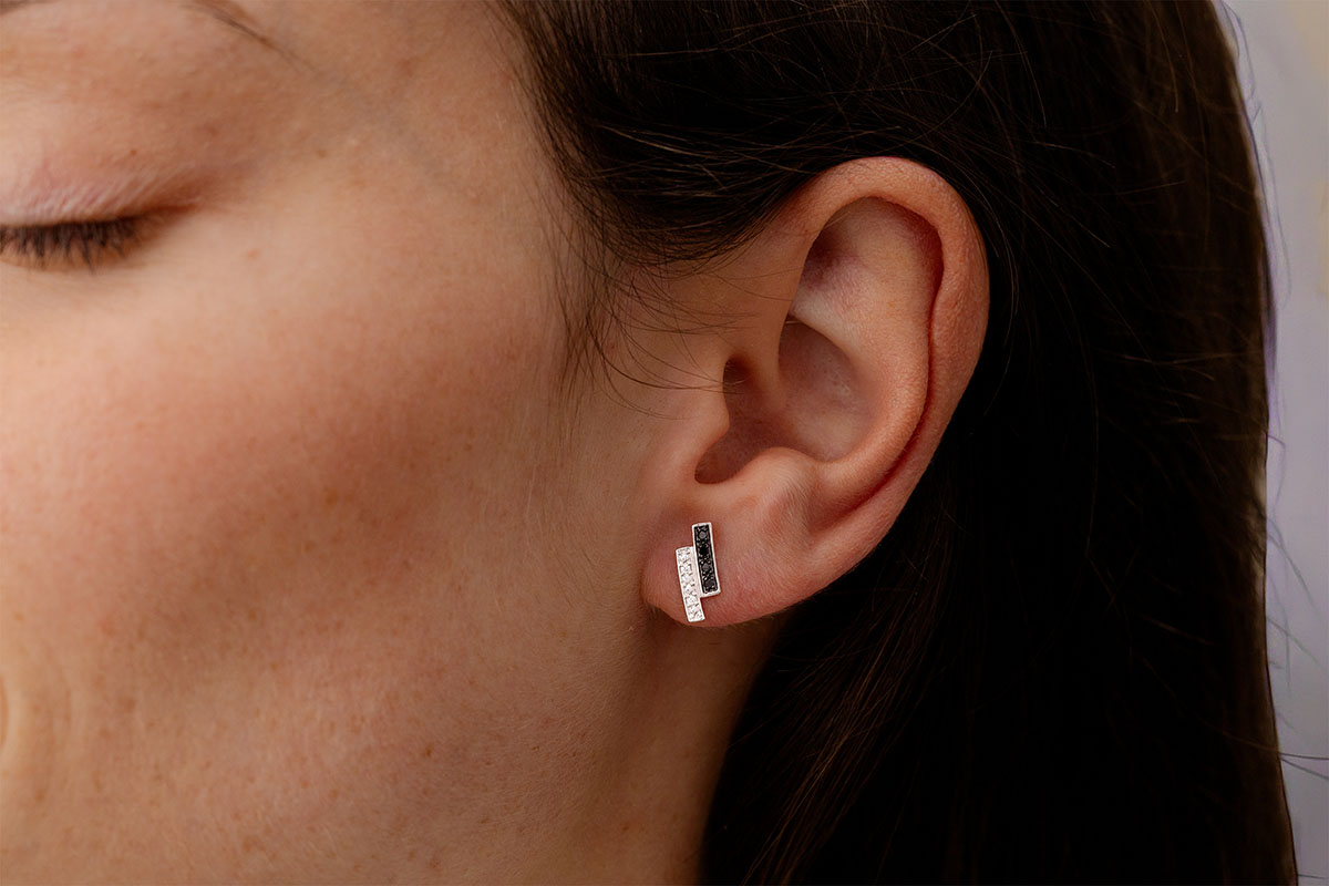 Boucles d'oreilles Clair Obscur puces - or blanc 9 carats, diamant noir