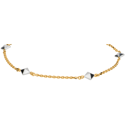 Inspirées de la forme d'un diamant brut, ces pyramides précieuses dont une facette porte un diamant sont élégantes et modernes. Motif de 5.5mm de long et 2mm de hauteur, Bracelet Genèse - de longueur réglable: 18cm, 17cm, 16cm. 4 diamants : 0.01 carat - Or jaune (9 carats = 375/1000): 1.2 g.Plus dimensions