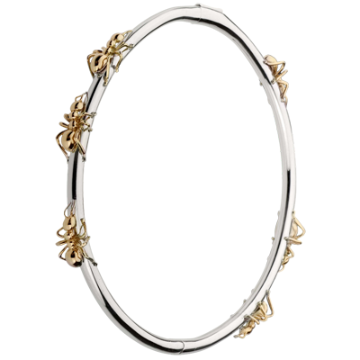 En rythme ininterrompu, les fourmis d'or rose cheminent sans fin. Longueur fourmis: 7 mm - Diamètre bracelet: 18.8 cm. Or blanc et or rose (18 carats = 750/-): 14 g. Plus dimensions