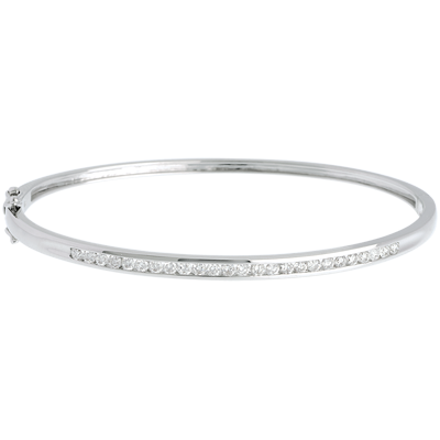 Bracelet Jonc barrette - or blanc 18 carats - 0.75 carats - 25 diamants