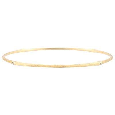 Une branche de bambou souple et solide se métamorphose en un bracelet d'or jaune brossé éternel, serti de diamants. Le travail à la main de la finition matte lui confère un aspect naturel au réalisme saisissant. 12 diamants : 0.04 carat - Or jaune (18 carats = 750/-): 6.6 g.Plus dimensions