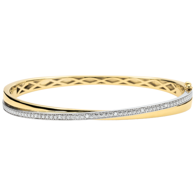 Bracelet jonc composé d'un anneau en or jaune subtilement entremêlé à un anneau entièrement pavé de diamants.