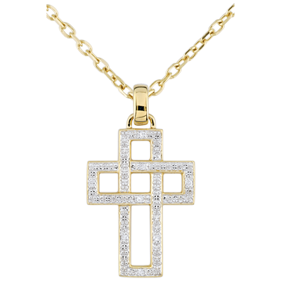 Pendentif Croix diamants géométrique - or jaune 9 carats