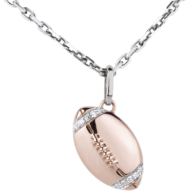 Pendentif Ballon de rugby - or blanc et or rose 18 carats et diamants
