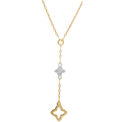 Un collier Y allie les deux ors et les diamants sur une déclinaison géométrique et élégante.