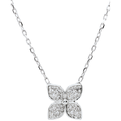 Collier Fleur d'éternité - 16 diamants - or blanc 9 carats