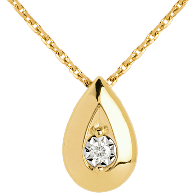 Une larme d'or avec diamant de centre pour un collier chargé d'ivresse et d'émotion.