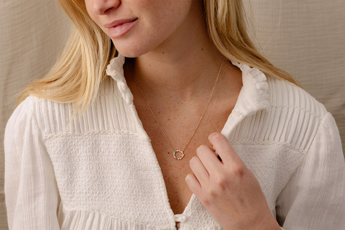 Collier Florelia – Or jaune 9 carats, émeraudes et diamants synthétiques
