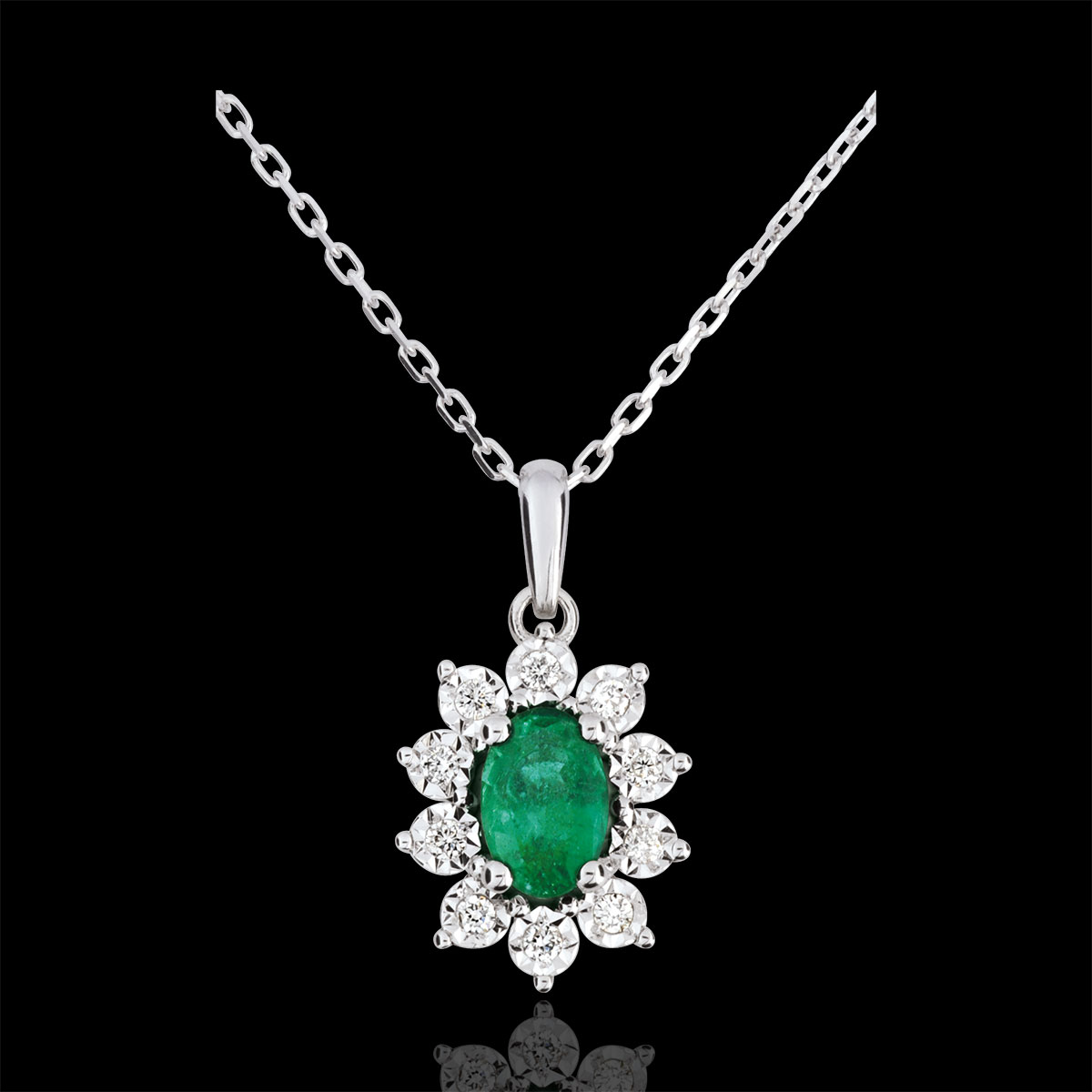 ETERNEL EDELWEISS Nº1 Collier Eternel Edelweiss - Marguerite Illusion - émeraude et diamants de synthèse - or blanc 18 carats