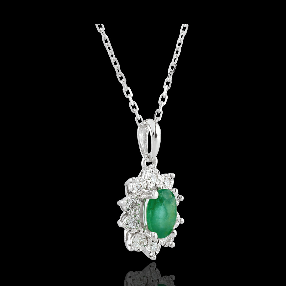 ETERNEL EDELWEISS Nº1 Collier Eternel Edelweiss - Marguerite Illusion - émeraude de synthèse et diamants de synthèse - or blanc 9 carats