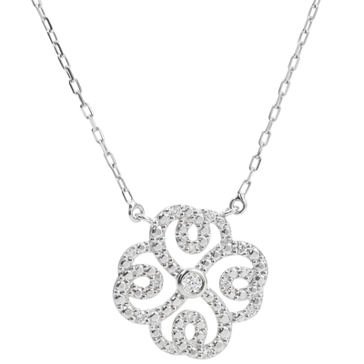Collier Destinée- Trèfle Arabesque - or blanc 9 carats et diamants