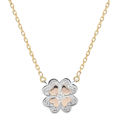 Collier Éclosion - Trèfle Étincelant - 3 ors et diamants - trois ors 9 carats