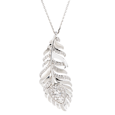 Le colier Altesse en or blanc 18 carat, se distingue par son motif plume orné de 50 diamants synthétiques scintillants. Avec une longueur de chaîne de 45 cm, ce collier ajoute une touche d'élégance et de sophistication à votre décolleté, rappelant le faste du paon.