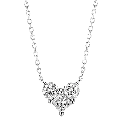 Un cœur pavé de 3 diamants délicatement posés sur un collier or blanc. Cet icone de la joaillerie est revisitée par Edenly avec poésie pour une déclaration d'amour des plus intenses. Oh, lovely! Avec chaîne avec double position 42cm et 45cm en or 18 carats. 3 diamants : 0.29 carat - Or blanc (18 carats = 750/-): 1.4 g. Cluster de diamants naturels : 3 - Plus dimensions