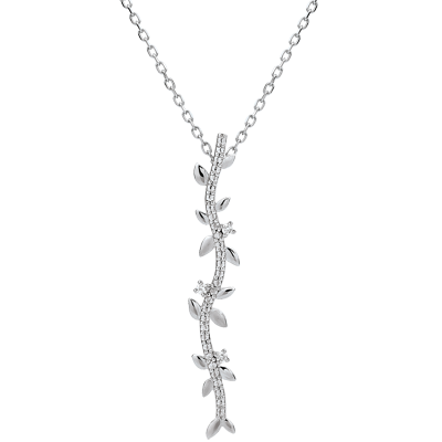 Collier tige Jardin Enchanté - Feuillage Royal - or blanc 18 carats et diamants