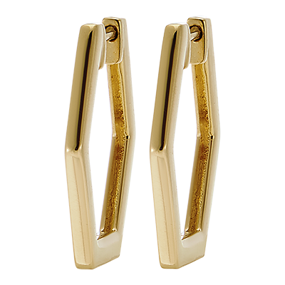 Ces créoles minimalistes en or jaune sont inspirées de la forme hexagonale des alvéoles de la ruche. Ce design épuré et moderne en fait une pièce de joaillerie intemporelle. Or jaune (9 carats = 375/1000): 1.6 g. Plus dimensions