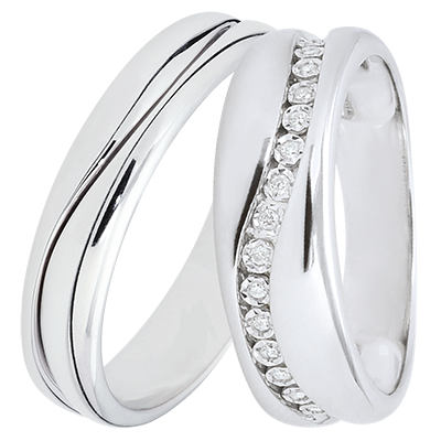 Duo d'alliances Amour- or blanc & diamants - 9 carats