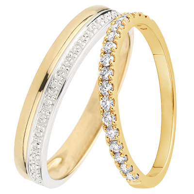 Duo d'alliances Elégance & Bettina - or blanc et jaune & or jaune et diamants - 18 carats