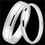 Une élégante paire d'alliances pour elle & lui. Un jonc fin poli de 2mm de largeur pour madame, un ruban en or blanc brossé est décorée d'une bande horizontale en or brillant pour monsieur.…