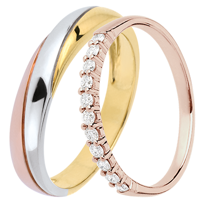 DUO D'ALLIANCES SATURNE & ORIGINE Duo d'alliances Saturne & Origine - trois ors & or rose et diamants - 18 carats