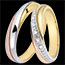 L'alliance équilibrée des trois couleurs d'or: blanc, jaune et rose, soulignée d'un pavage diamants pour une alliance unique et intemporelle.