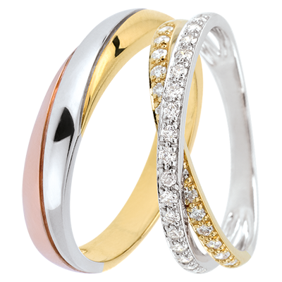 Duo d'alliances Saturne - trois ors & or jaune et blanc et diamants - 18 carats